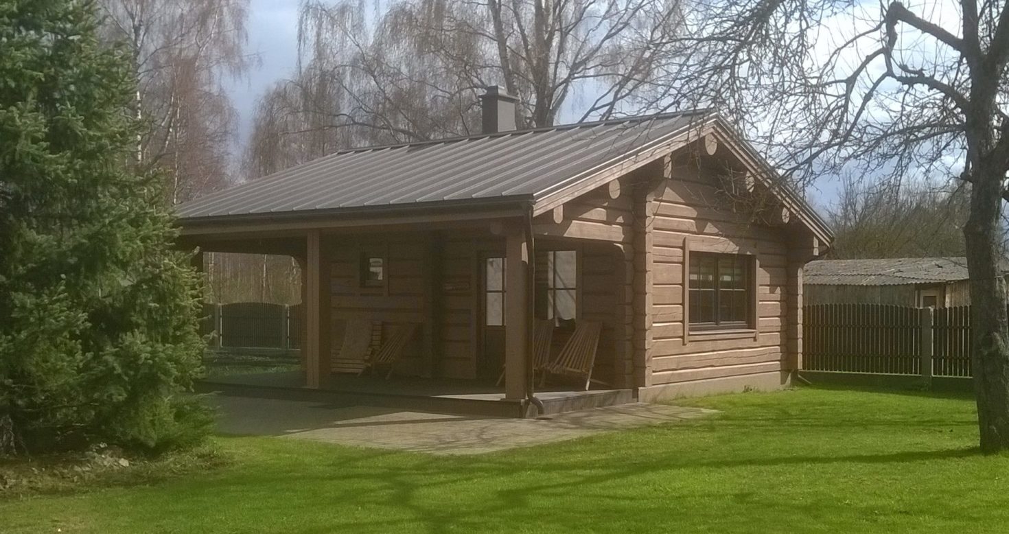Pirtiņa Zvejniekciemā. Fasādes apdarē izmantots ADLER Lignovit Lasur, tonis Erdbraun.