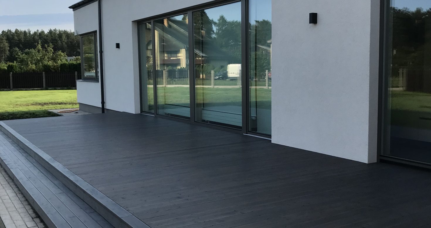 ADLER Pullex Silverwood. Speciāls tonis. Lapegle. SIHGA FassadenClip slēptie stiprinājumi.